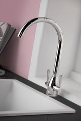 A delightful design with a swan neck spout, this mixer is suitable for all water systems and has a durable chrome finish.