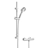 The Pennington Bar Shower is an all-in-one solution for setting up a thermostatic shower. Its bar valve has a modern polished chrome design and is user-friendly, with separate controls for water flow and temperature. This shower system guarantees comfort and safety as it prevents sudden changes in water temperature, making it safe for everyone in the family. The single mode showerhead has easy-to-clean nozzles, and the adjustable slider rail completes the practical package of this chrome shower set.