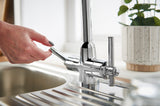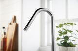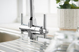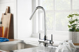 A minimalist dual handle design with a practical swivel spout.